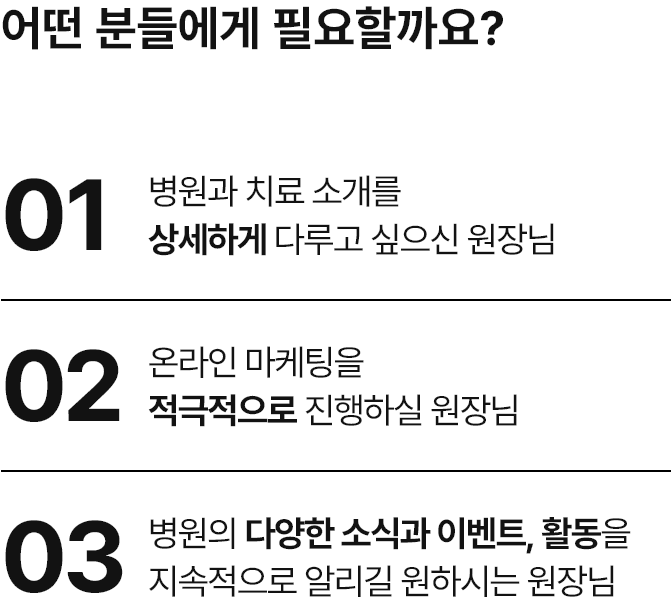 병원의 핵심 정보를 한 눈에, 소개 페이지