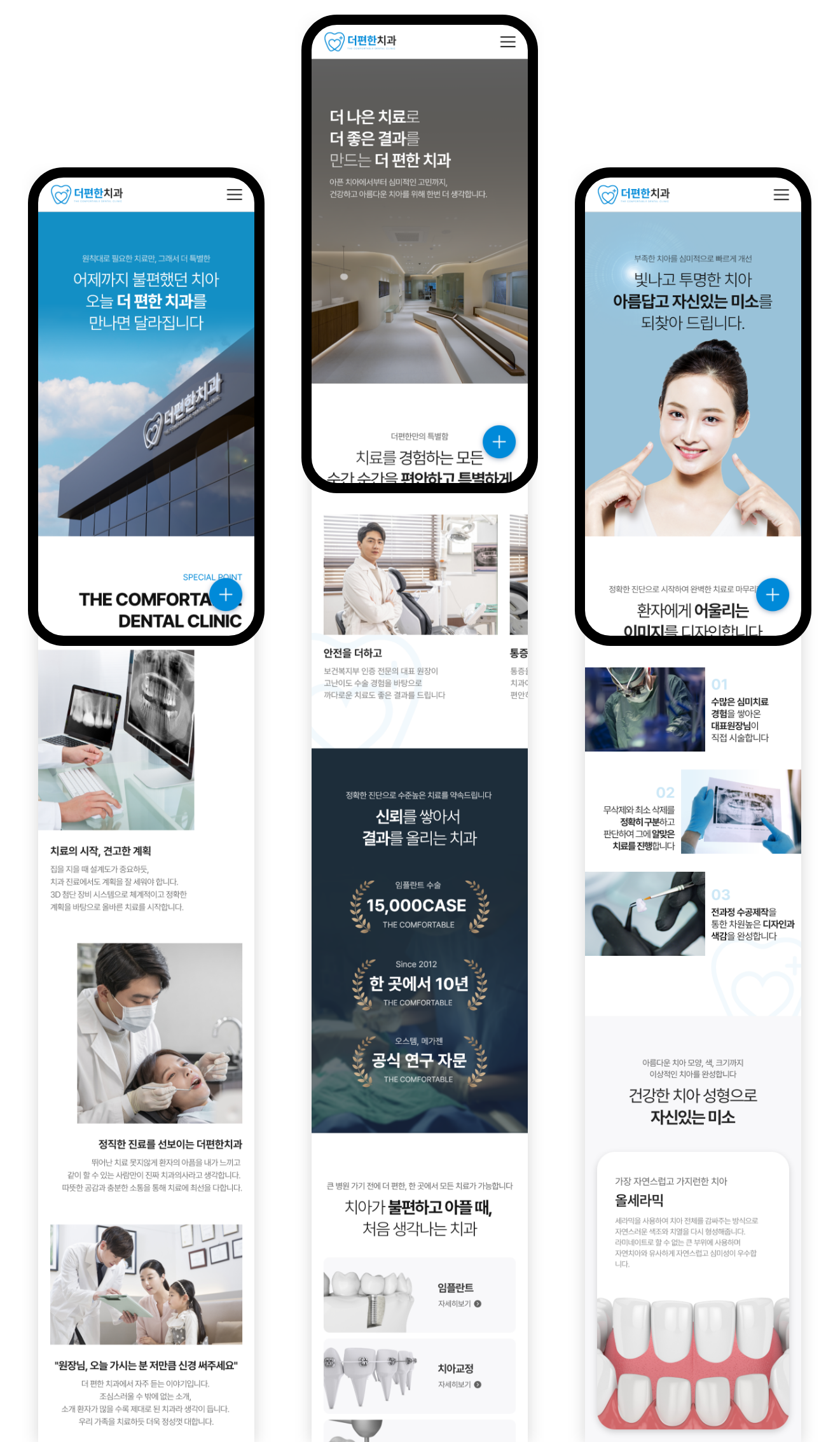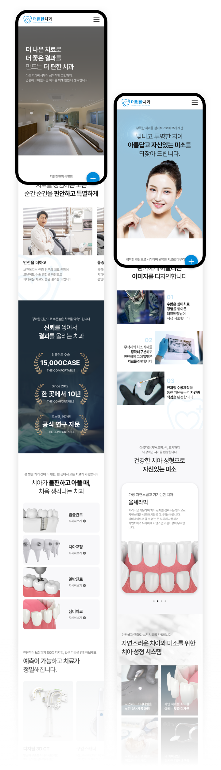 환자들에게 전문적인 내용과 양질의 정보를 최대한 이해하기 쉽도록 만들었으며 주력으로 하는 치료 방식을 기존 방식과 비교한 내용을 표로 정리했습니다. 또한 수술 전후 섹션을 통해 치료 효과를 실제 확인할 수 있습니다.