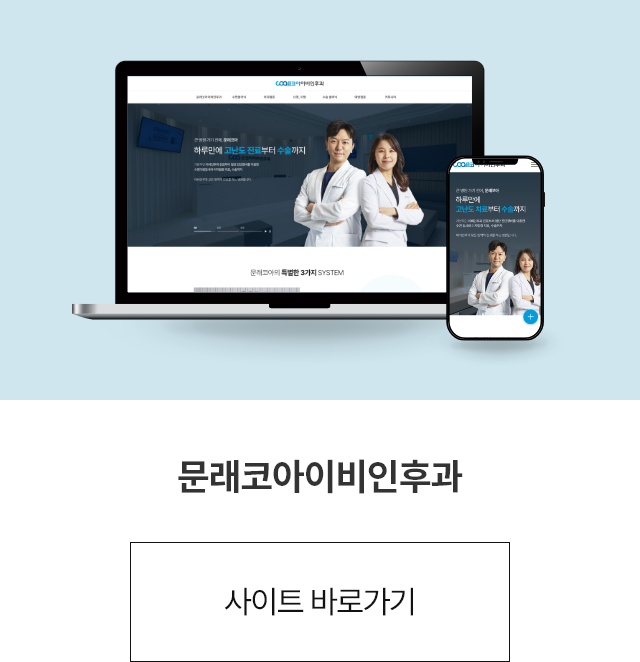 병원의 강점, 프로필, 둘러 보기 영역을 장점이 녹아 있는 카피와 이미지 구성을 가독성 있게 배치하여 눈을 사로 잡습니다.
