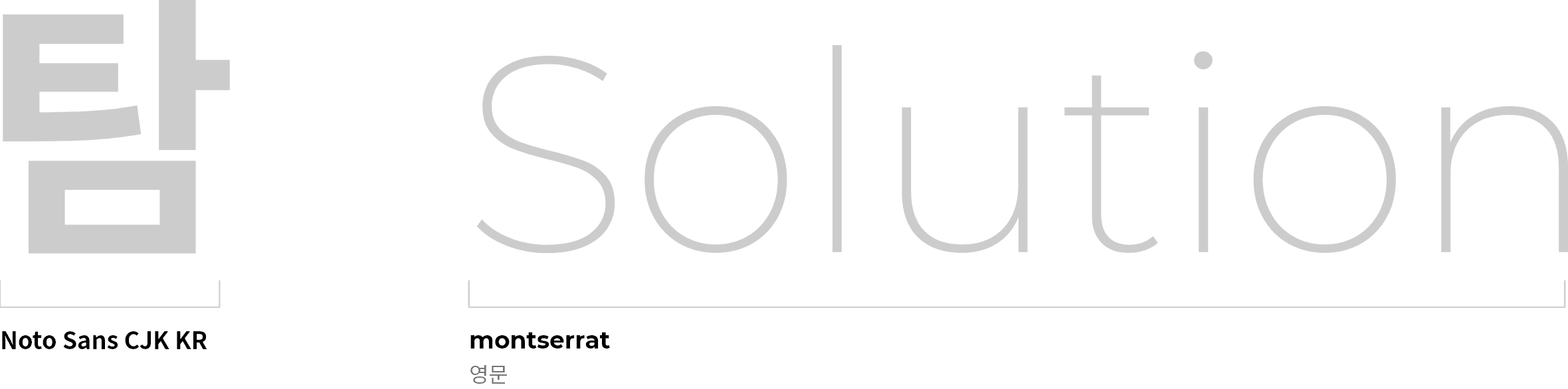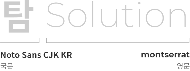 TYPE FACE는 탐솔루션의 이야기를 고객에게 전달하는 역할을 합니다. 일관성이 있는 서체 사용은 브랜드 아이덴티티를 구축하는데 좋은 역할을 하고, 명확한 정보 계층 구조는 스마트하고 정확한 브랜드의 이미지를 강조할 수 있습니다.
