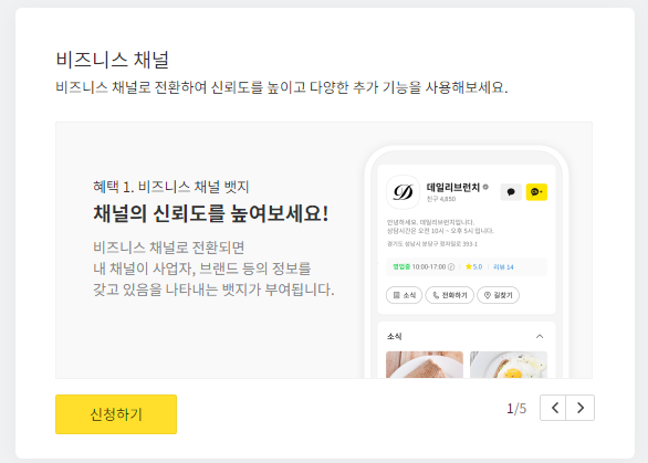 (※비즈니스 채널 신청 시에는 사업자등록증 및 개인 휴대폰 인증이 필요하니 참고 바랍니다)