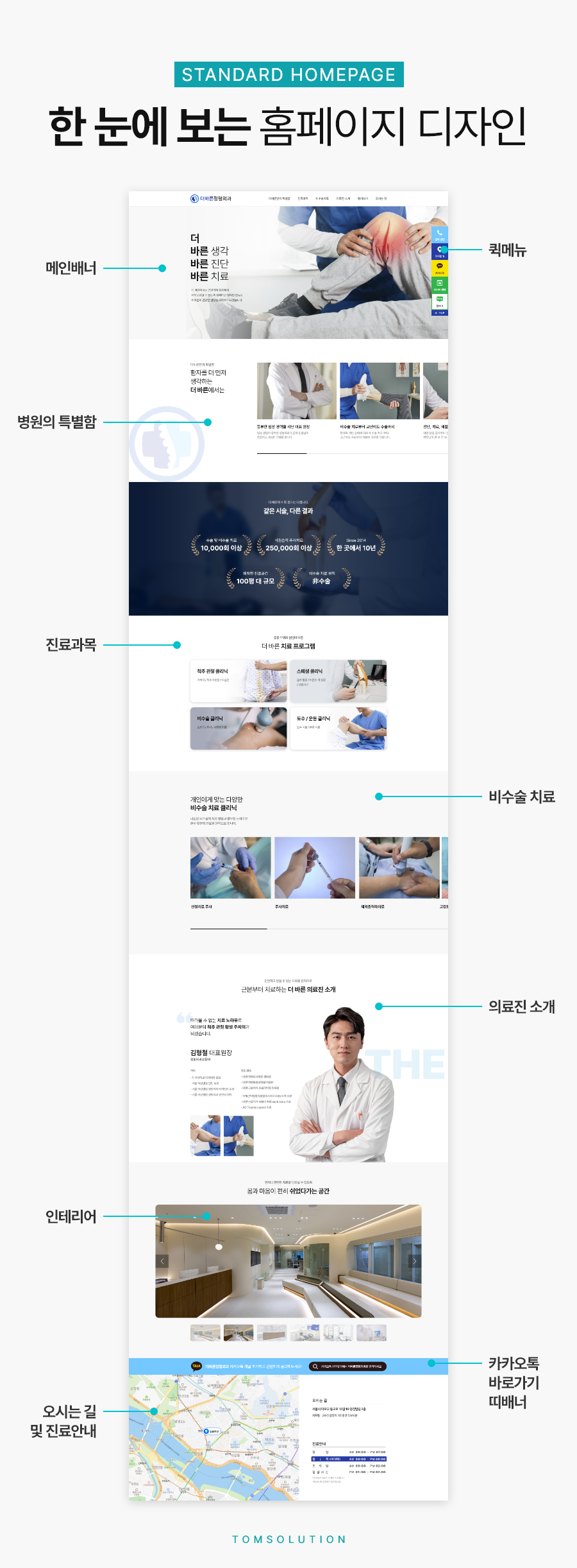 1페이지로 구성된 스탠다드 홈페이지는 환자들이 알고 싶어 하는 정보와 병원이 전하고 싶은 스토리를 명료하게 전달할 수 있습니다.
