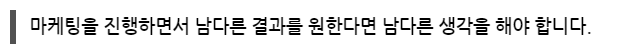 훌륭한 요리(마케팅 결과)가 될 수 없겠죠. 결국 음식이 맛있어야 합니다 이 말은 즉 내용이 좋아야 한다는 것인데요.