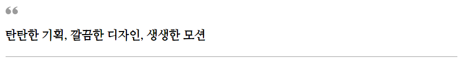 섹션으로 스크롤을 밑으로 내리면서 기승전결의 스토리가 펼쳐지기 때문에 설득력 있는 메시지를 전달할 수 있습니다.