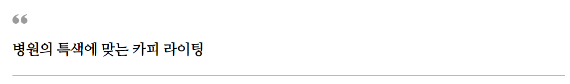 사용하여 공간의 요소별로 병원의 자연스러운 느낌이 묻어 나도록 하였습니다. 이를 통해 환자분들이 어느 곳에 머물러도