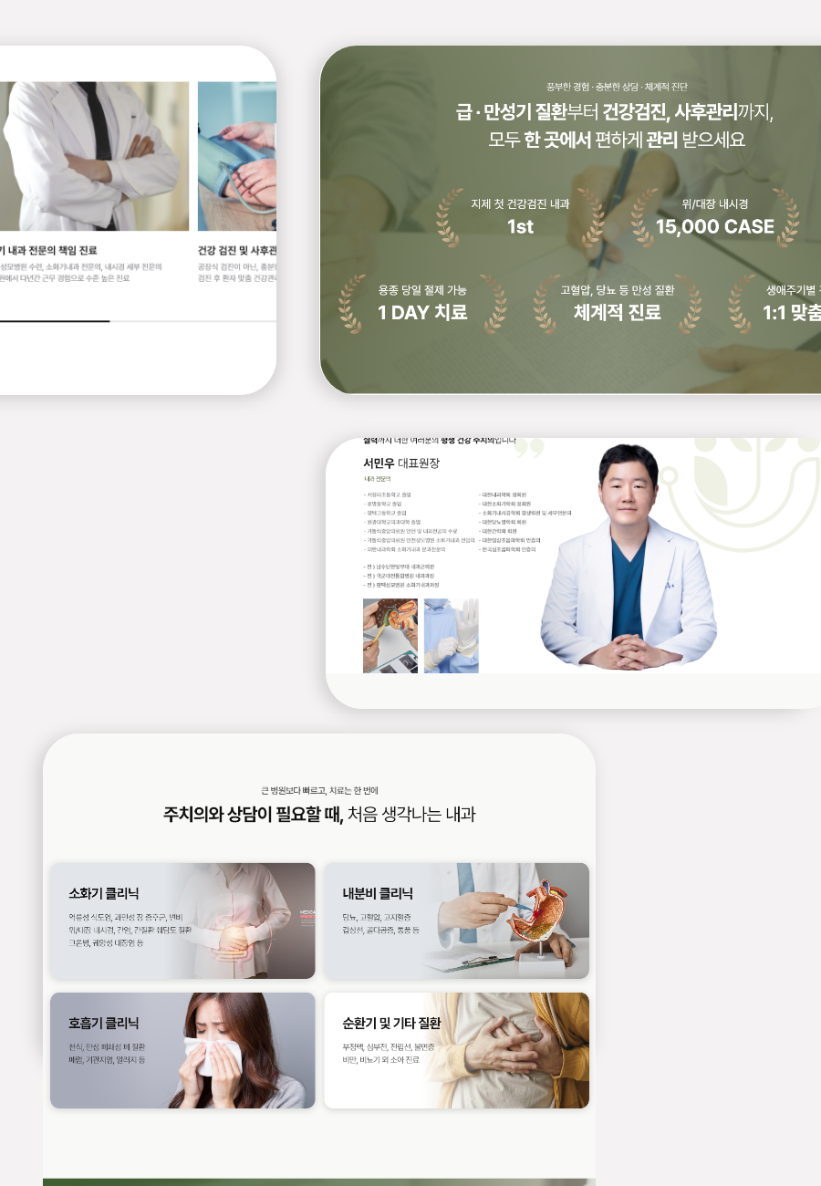 오늘은 최근에 제작한 내과 홈페이지 사례를 소개해 드리겠습니다.