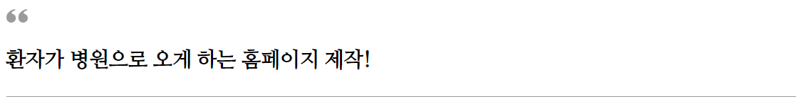 단일 페이지의 홈페이지로 병원의 특별한 점, 핵심 가치, 원장님 프로필, 진료 과목, 진료 시간과 오시는 길의 핵심 정보와 스토리가