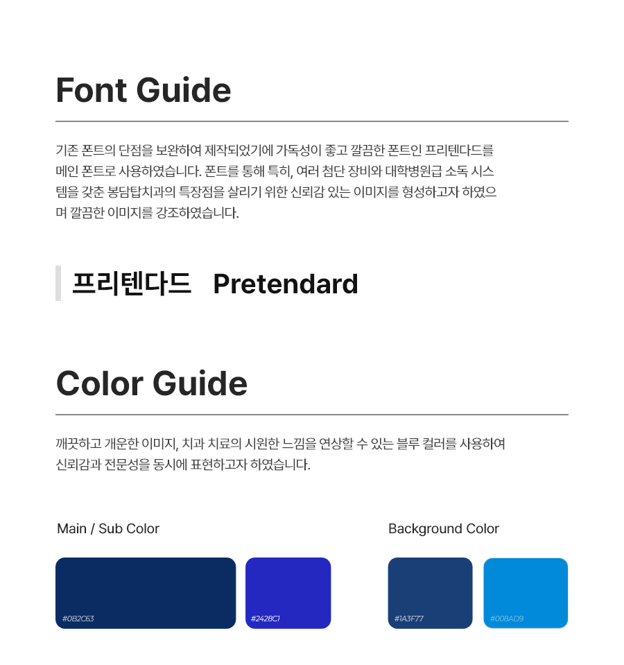 위한 신뢰감 있는 이미지를 형성하고자 하였으며 깔끔한 느낌을 강조하였습니다.