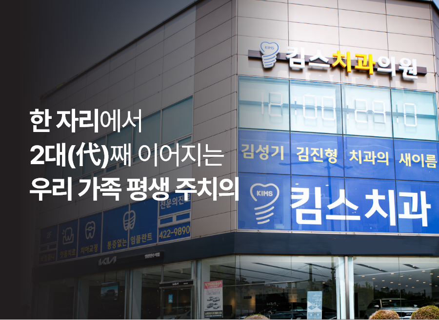 킴스치과는 한 곳에서 오랫동안 진료를 해오고 있으며, 아버지와 아들 2대째 운영하는 치과입니다. 가족 치과인 점을 살려서