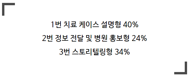 실제 케이스 내용이 신뢰가 많이 간다는 면이 많았으나, 적나라한 치료 사진이 환자들은 다소 부담감을 느꼈던 것 같습니다.