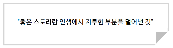 영화 감동 앨프리도 히치콕의 말처럼, 보는 사람을 몰입시키기 위해서는 불필요한 부분을 모조리 제거해야 합니다. 그럼 불필요한