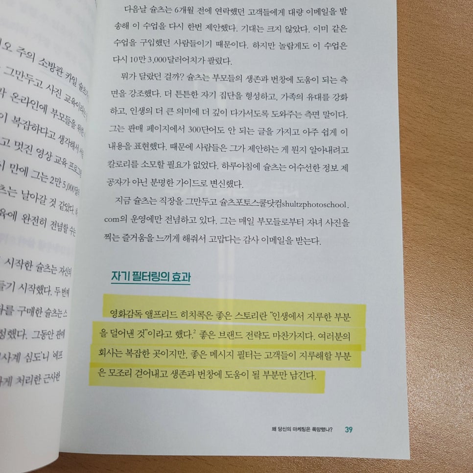 " 좋은 메시지 필터는 고객들이 지루해할 부분은 모조리 걷어내고 생존과 번창에 도움이 될 부분만 남긴다. -p.39" 이 책의 핵심은 기업(병원)