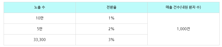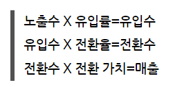 노출수 X 유입률 X 전환율 X 전환 가치=매출