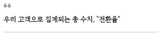 이처럼 우리 고객으로 집계되는 수치를 '전환율' 이라고 합니다.