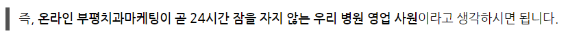 수많은 병원들이 범람하는 온라인에서 언제라도 검색했을 때 우리 병원을 계속 노출을 시키는 일은 온라인에서