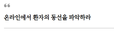 환자들이 편안하게 치료를 받으실 수 있도록 동선을 고려하여 인테리어 설계를 하듯이 온라인에서도 환자가 어떻게 움직이는 지