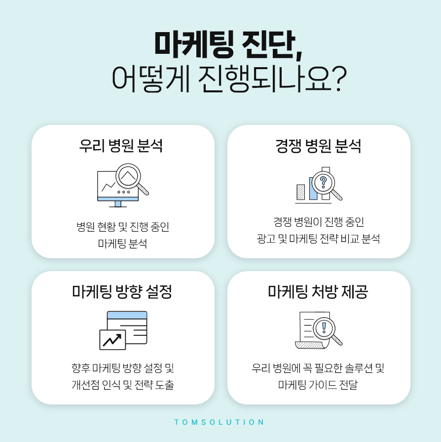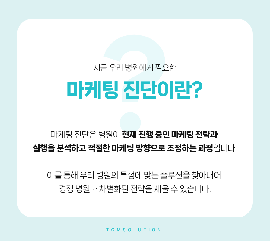 저희 탐솔루션에서는 13년의 경험과 노하우로 서울병원마케팅 진단을 해드리고 있습니다. 정기적으로 건강검진을