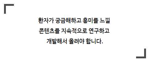 것인가를 만드는 설계도를 그리는 일입니다. 영상을 끝까지 보게 하는 힘은 정보와 재미 2가지에서 나옵니다. 환자들이 무엇을