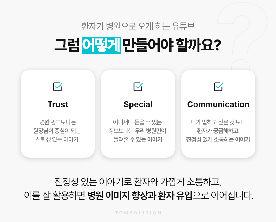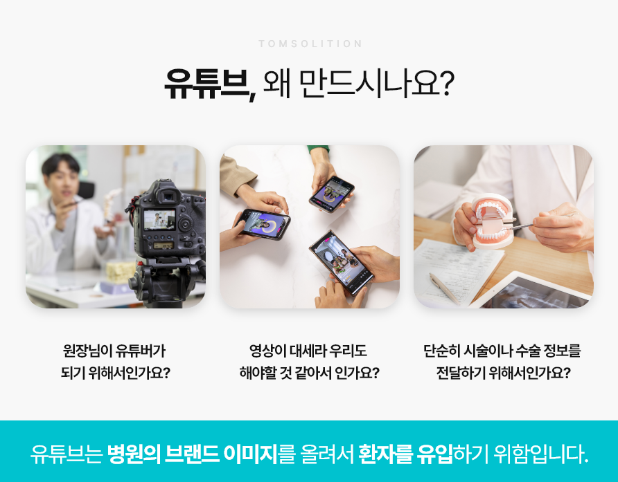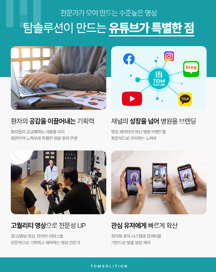13년간 병원 마케팅을 전문으로 마케팅 이해도가 높은 탐솔루션은 환자들이 그저 보고 지나치는 영상이