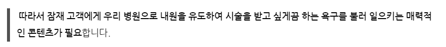 블로그는 무조건 열심히 쓴다고 되는게 아니라, 위와 같이 환자들의 마음을 끌어당길 수 있는 소재를 기획하고, 설득력 있는