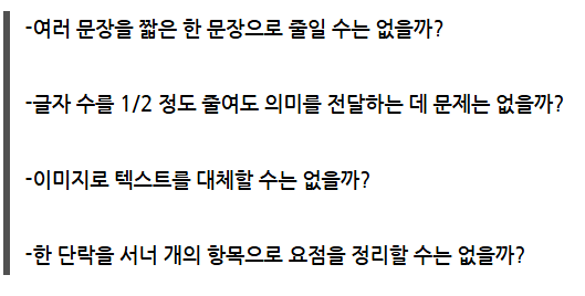 것입니다. 사람들이 홈페이지 내용을 모두 읽을까요? 내용이 너무 많으면 그냥 지나쳐 버립니다. 고객은 홈페이지에서
