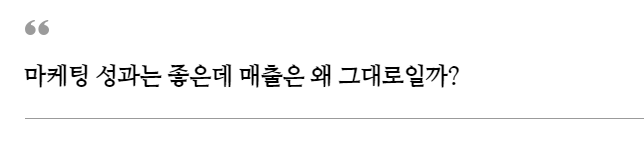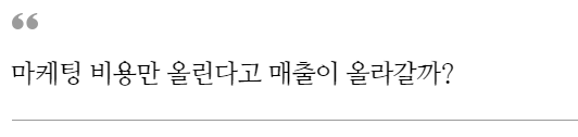 이유는 무엇일까요? 단순히 마케팅비를 올린다면 해결될까요? 마케팅비를 올린다고 매출이 따라 올라간다는 보장이