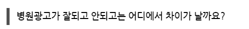 생각합니다. 물론 병원광고 마케팅을 외부 활동을 통해 우리 병원을 타깃 고객에게 인식 후 유입시키는 것은 맞지만, 이것만이 전부는