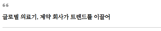 기반으로 만들어지기도 하지만 대부분 글로벌 의료기기 회사 및 제약 회사가 트렌드를 이끌고 있습니다.