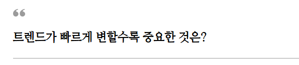 유행에 민감하고 빠르게 트렌드가 변하는 시술을 중점으로 가져가는 경우에 중요한 것은 민첩성입니다.