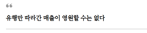 기존 방식을 고집했거나 좋은 시절에 나오던 매출이 영원할 것이라고 믿었던 경우들이죠.
