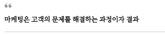 개념을 떠나서 저는 이렇게 말씀드리고 싶습니다. 마케팅은 고객의 문제를 해결해 주는 모든 과정이자 결과입니다.