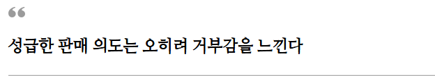의도'를 드러낸다면 오히려 고객은 우리에게서 멀어집니다. 특히 영업을 어설프게 배우다 보면 적극적인 태도를 보입니다.