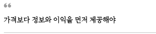 하는 홍보는 2가지, 가격과 상품 자랑입니다. 하지만 이 2가지는 고객이 원할 때 전달해도 늦지 않습니다. 가격은 고객에게 큰 이익이