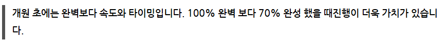 자꾸 수정을 거듭하다 보면 정작 타이밍을 놓칩니다. 대세에 큰 영향을 끼치지 않는다면 진행을 해야 합니다.