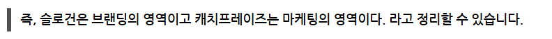 보여주는 단어입니다. 브랜드 아이덴티티를 담고 있으므로 브랜드 전략이 변경되지 않는다면 오랫동안 사용하는 문구라고 볼 수