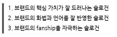 훌륭한 슬로건에는 3가지의 특징이 있습니다.