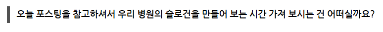 그럼 이런 궁금증이 생기실 수 있습니다. "슬로건 없는 병원들도 많은데 꼭 필요한가요?"라고요. 이 지적이 잘못된 건 아니지만