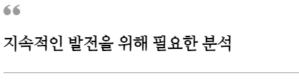 아니라 내부 시스템, 직원 상황, 외부와 내부 환경과 같이 전반적으로 점검해 나간다면 좋은 성과를 만들 수 있을 것입니다.