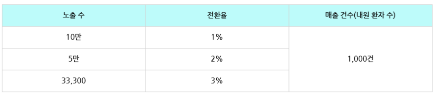 우리 병원에 올 고객은 따로 있기 때문입니다. 이처럼 우리 고객으로 집계되는 수치를 '전환율' 이라고 합니다.