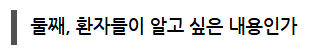 그보다는 환자들은 우리 병원에 대해서 뭘 궁금해할까?라는 질문을 놓고 깊은 고민을 통한 해답 제시가 필요합니다. 사람의 마음은 비슷해서