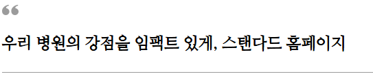 전문성을 띠는 사진이나 이미지를 잘 배치하고 우리 병원이 전하고자 하는 메시지를 임팩트 있게 전달할 수 있어야 합니다.