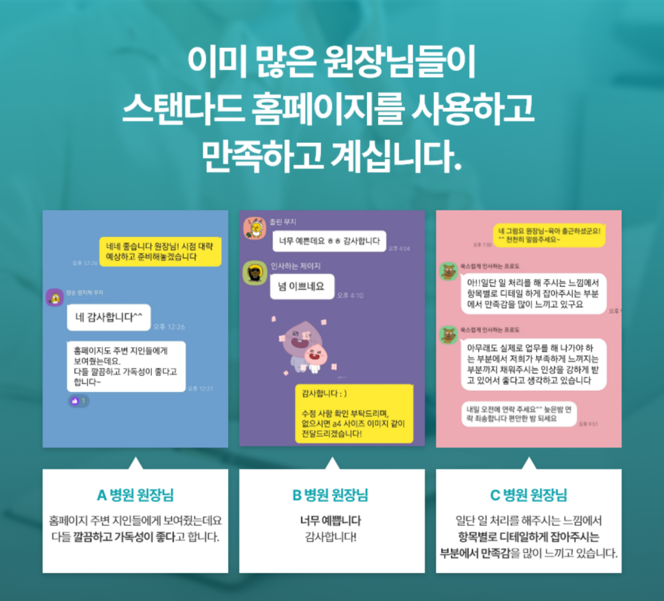 김포병원홈페이지제작 스탠다드 홈페이지로 제작하신 원장님들의 소중한 후기입니다. 저희 탐솔루션에서 만든 포트폴리오를 보시고