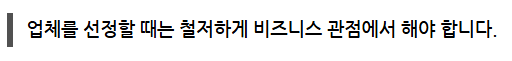경험이 없어서 처음에 업체를 잘못 골랐어도 괜찮습니다. 빠르게 부딪혀서 실망하고 빠르게 수정해 나가는 것이 장기적으로