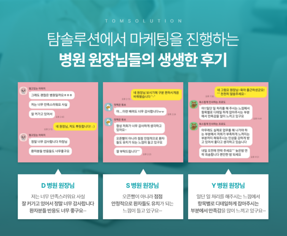 관리하는 병원들이 많으니 상대적으로 작은 거래처는 소홀히 할 가능성이 높죠. 개원을 준비하시는 원장님들이 저희 탐솔루션으로