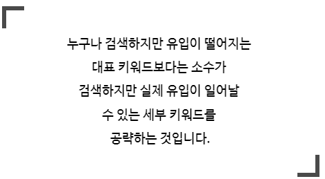 구체적인 목표를 가지고 검색했기 때문에 전환 가능성이 더욱 높다는 점을 주목해야 합니다. 세부 키워드를 통해서 유입된