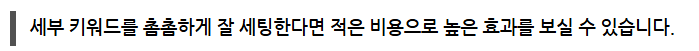 단순히 키워드 광고 예산만 올려서 오랜 기간 노출하는 것은 의미가 없습니다. 같은 광고 비용을 쓰더라도 품질 지수를 지속적으로