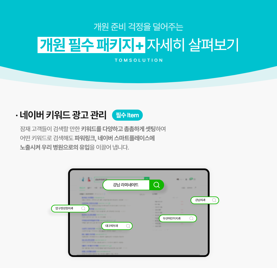 수 있을까 하는 방법을 고민해야 합니다. 효과적인 광고를 위해서 우리 병원만의 황금 키워드, 유입이 될 수 있는 세부 키워드를