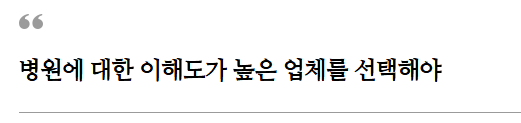 병원은 의료분야의 특수성을 가지고 있습니다. 많은 대중들을 대상으로 하는 옷이나 화장품 생활용품을 판매하는 소비재가 아니라