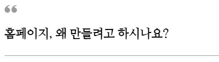 다른 업체보다 비싸요."라고요. '홈페이지는 어디서 만드나 어차피 비슷하니까 가격 싼 걸로 하자. '라는 생각을 버려야 합니다.