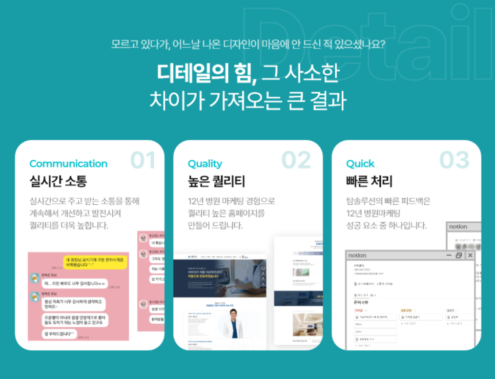 환자들이 겪을 수 있는 혼선을 막을 수 있습니다. 그런데 어느 날 잠실의원홈페이지제작 업체와 연락이 닿지 않는다면 그것만큼